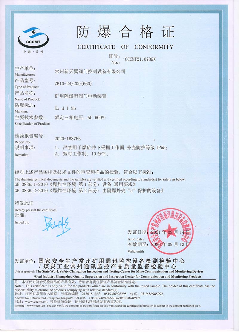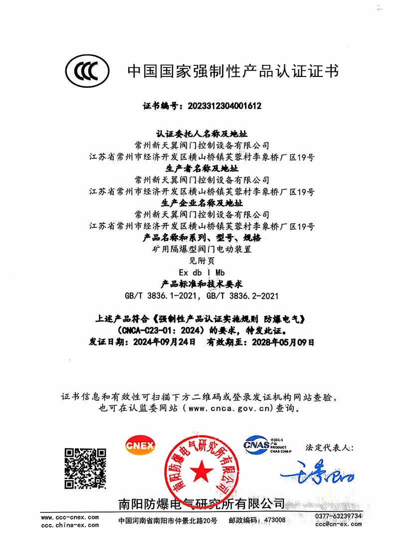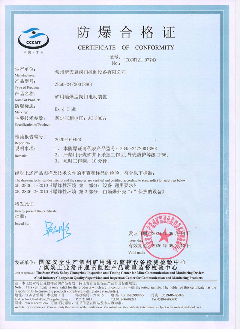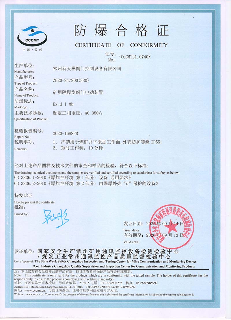 礦用隔爆ZB10-24中國國家強制性產(chǎn)品認證證書110.1
