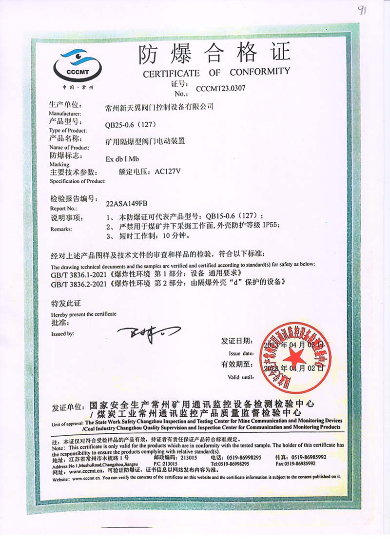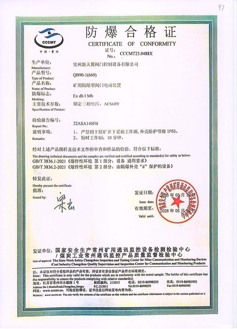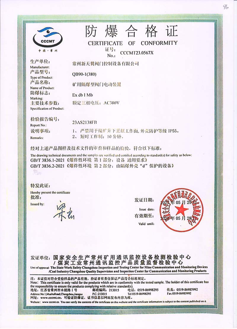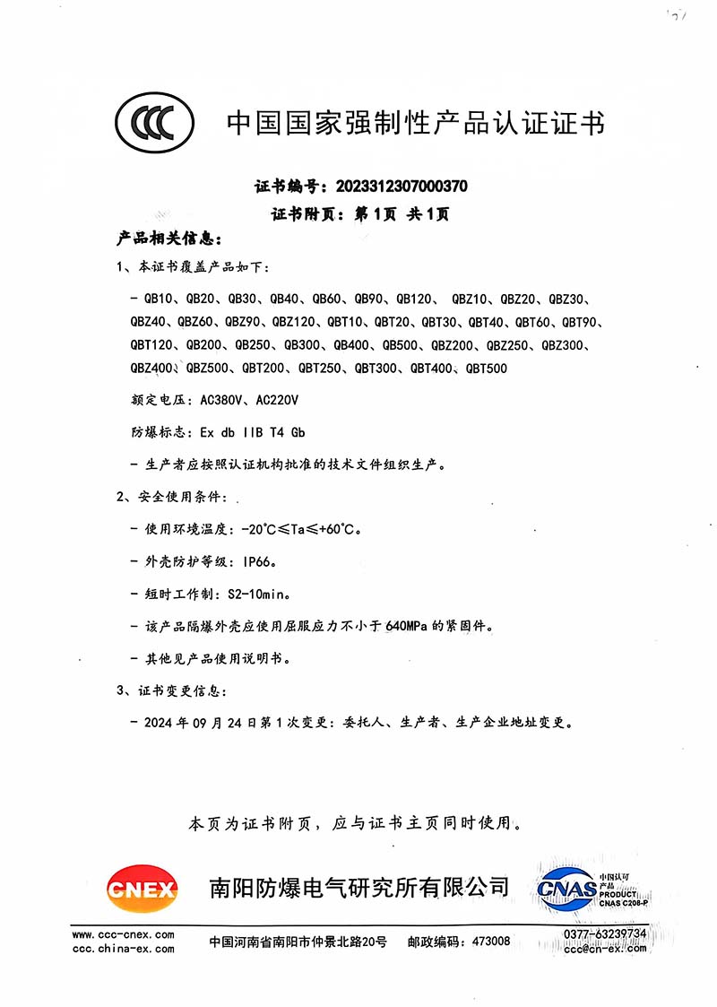 隔爆型QB QBZ QBT 220380中國國家強制性產(chǎn)品認證證書107.1
