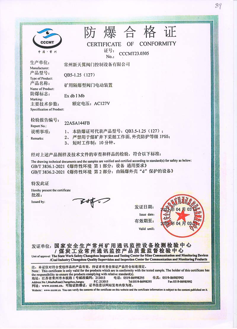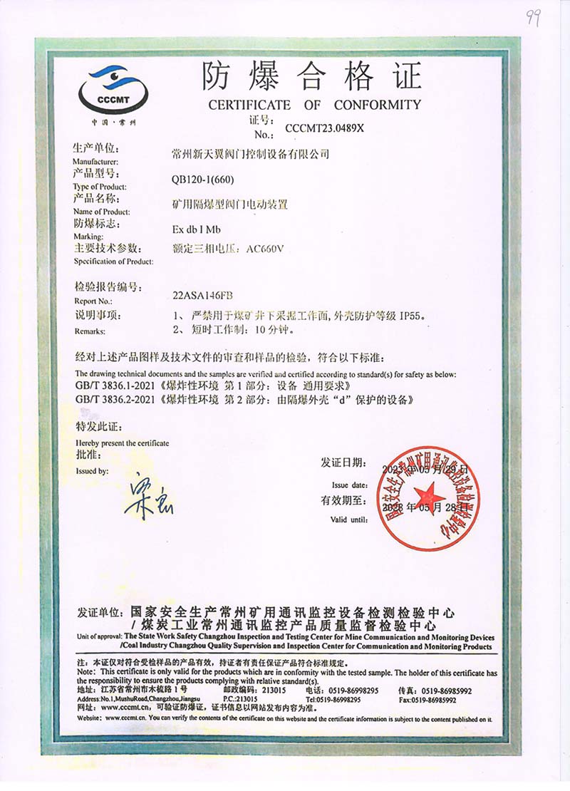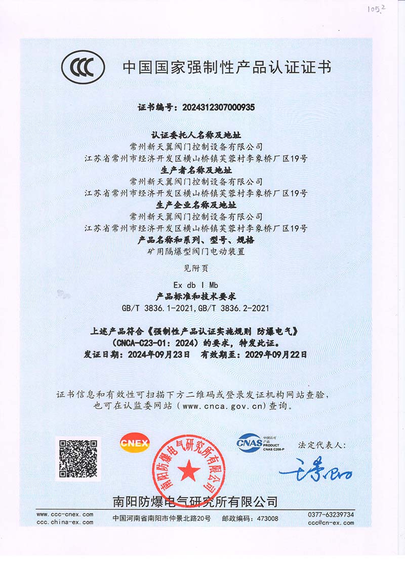 礦用隔爆QB127V中國國家強制性產(chǎn)品認證證書105.2