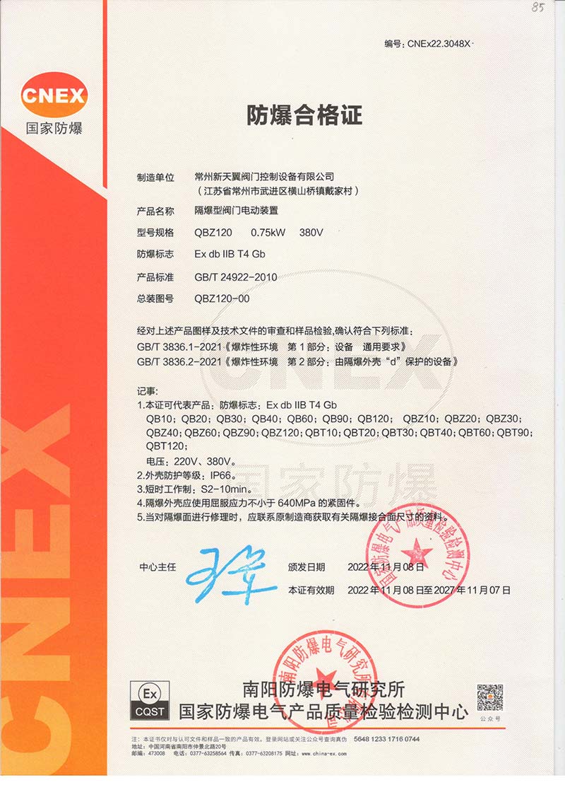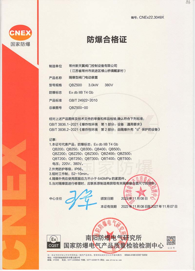 隔爆型QB QBZ QBT 220380中國國家強制性產(chǎn)品認證證書107.2