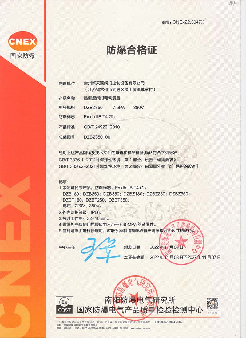 常州新天翼閥門控制設備有限公司是專業(yè)從事閥門電動裝置設計、制造、開發(fā)的企業(yè).公司擁有一批國內(nèi)外優(yōu)秀的產(chǎn)品設計和生產(chǎn)制造的工程技術人員、齊全的項目管理服務,統(tǒng)籌工程實力。依靠自身科技及優(yōu)勢,不斷進行新產(chǎn)品開發(fā)。現(xiàn)已開發(fā)、制造了十幾種專用閥門電動裝置,深受用戶好評??/p>