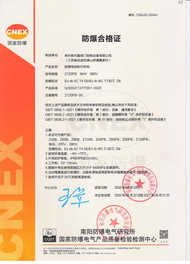 防爆Z10B Z10FB國家強制性產(chǎn)品認證CT4證書109.2