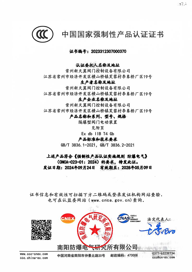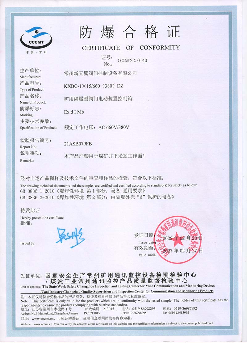 隔爆控制箱 中國國家強制性產(chǎn)品認證證書111.2