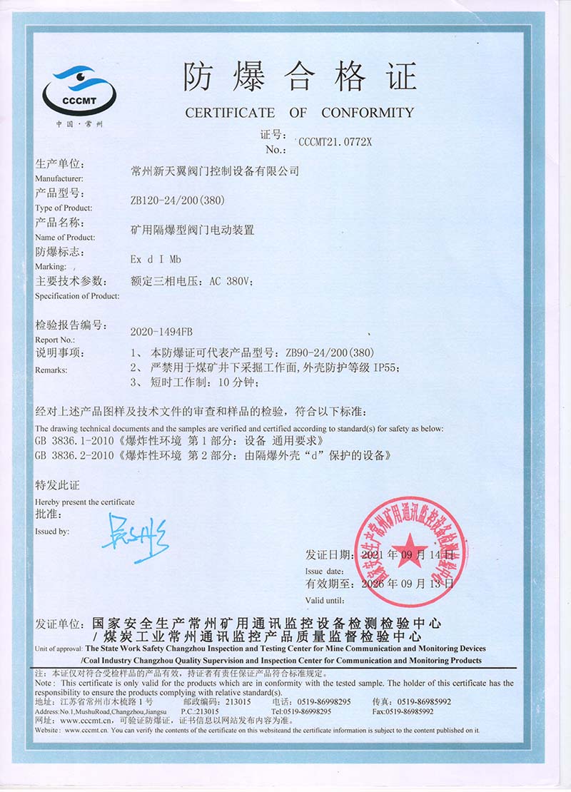防爆Z10B Z10FB中國國家強制性產(chǎn)品認證證書109.2