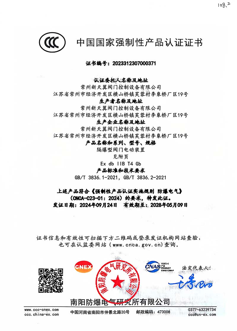 隔爆型DZB 中國國家強制性產(chǎn)品認證證書108.1